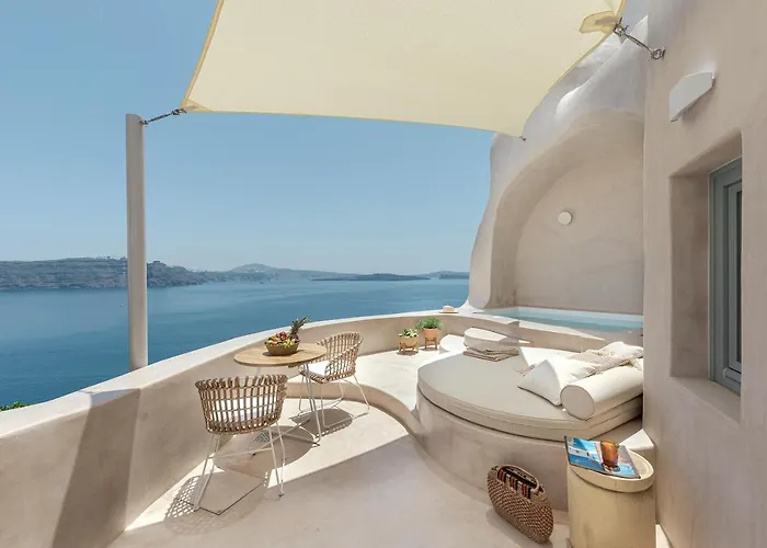 46m^2인 The Exotic Cave Suite에서 Oia's Main Street에 빠르게 액세스할 수 있습니다.